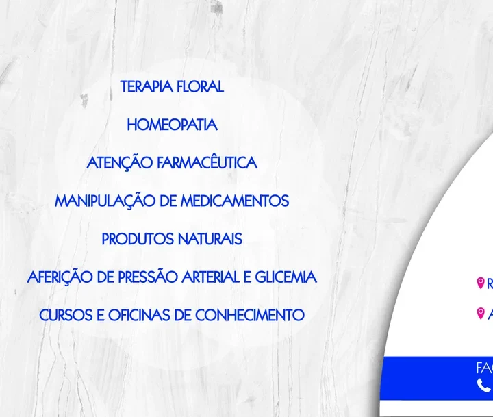 Fitoterapia chinesa, Homeopatia, Florais, Ionquântic, Manipulação Veterinária, entre outros serviços.